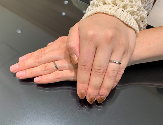 【Y様・R様】 本日も素敵なお客様をご紹介いたします! やわらかい雰囲気が素敵なおふたり。 楽しくお話をされながらリングを着け比べるお姿が仲睦まじく、とっても癒されました…! 色々と見ていく中で、艶消しのデザインでイメー...