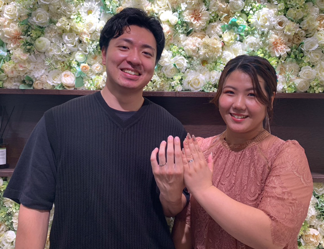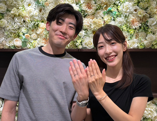 【H様・T様】 本日も素敵なお客様をご紹介いたします! 笑顔が素敵でとても仲良しのおふたりでした。ご案内させていただくなかで、たくさんお話を伺い私も指輪選びの時間がとても楽しく過ごすことができました! そんなおふたりから...