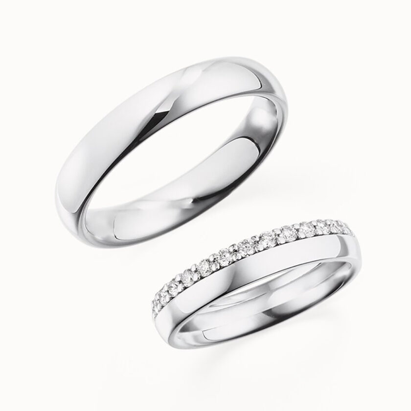 セレブレーションシーンに相応しいティアラや王冠をモチーフにデザインされたマリッジリング。 表面には水面をイメージした繊細な凹凸加工が施されています。