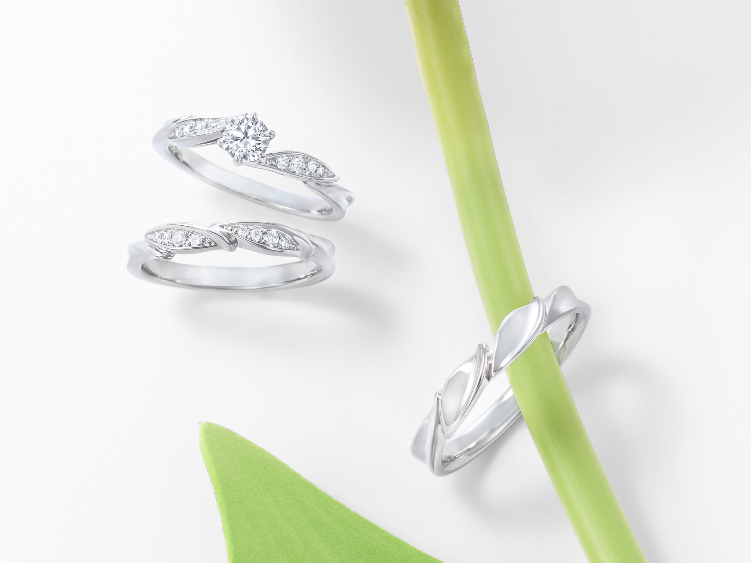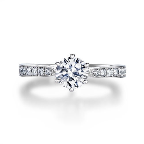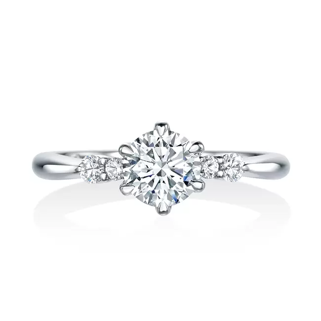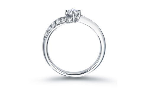 ダイヤモンドとプラチナが織りなす、しなやかなフォルム。サイドに向かって流れるように入るラインがすっきりとした印象を与えてくれます。