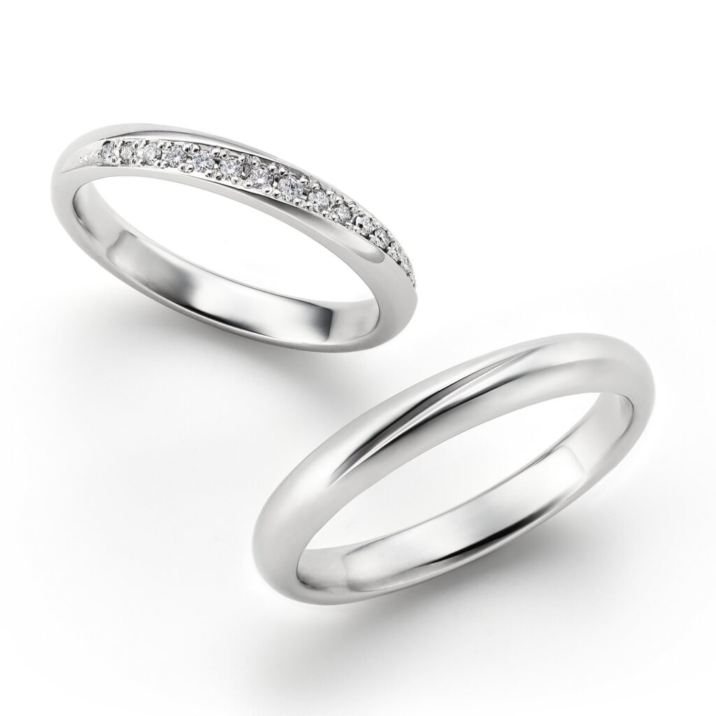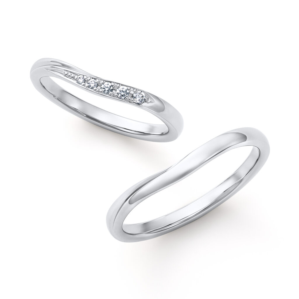 細身で重ね付けしやすいウェーブラン。純プラチナの凛とした輝きは、生涯にわたってご愛用いただくマリッジリングとして最適です。