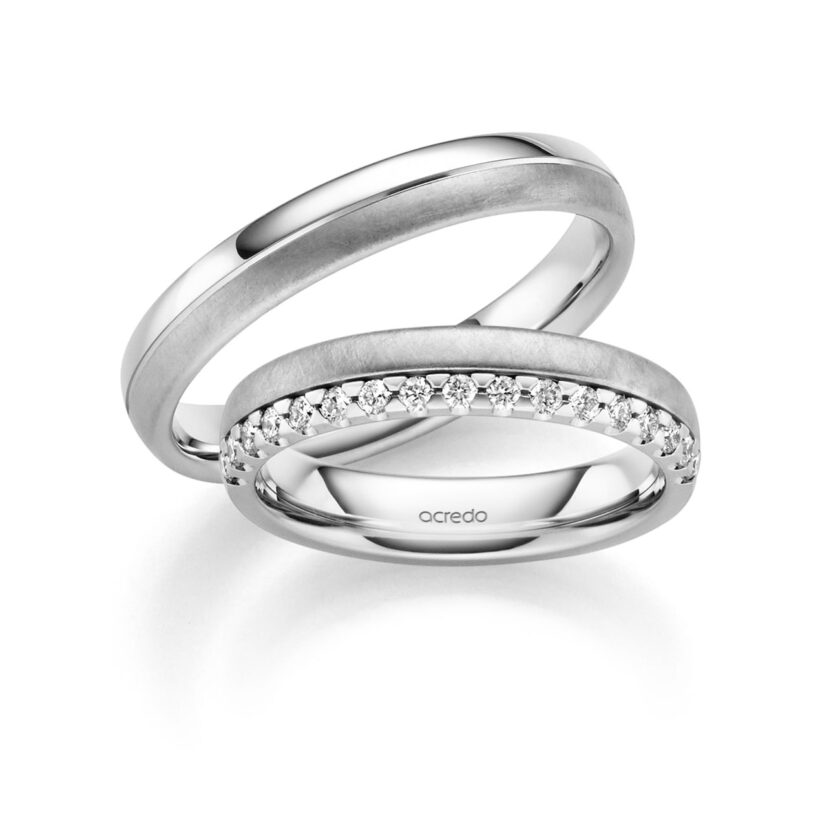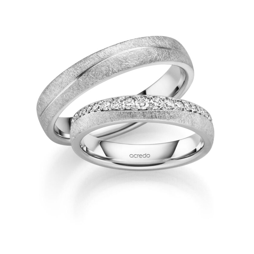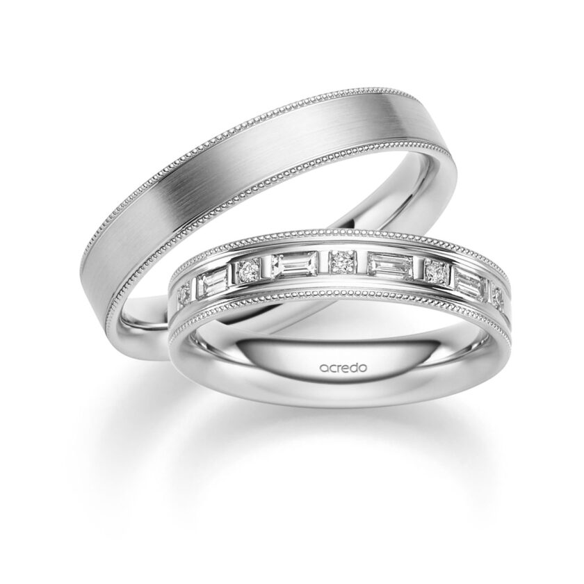 アームには地金の美しさを最大限に引き出した幾重もの繊細なウェーブラインを刻みました。 レディースのリングには控えめな主張ながらまばゆい光を放つダイヤモンドをセットしています。 ドイツのクラフトマンによる丁寧な手仕事から生...