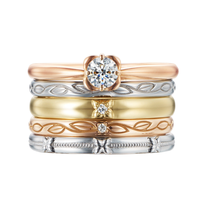 縦に3つ並んだダイヤモンドとイエローゴールド、ローズゴールド、レッドゴールドのグラデーションが美しいマリッジリング。 ボリューミーなリングアームと魅惑のカラーで独特の存在感をアピールしてくれます。 着け心地もスルっと気持...