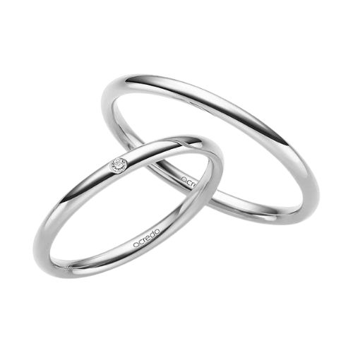 シンプルな甲丸リングのアームへ斜めにボーダーラインを入れつや消し、つや有りの両方のフェイスで楽しめます。 レディースには一粒ダイヤモンドをセットしてラグジュアリーな表情を作りました。